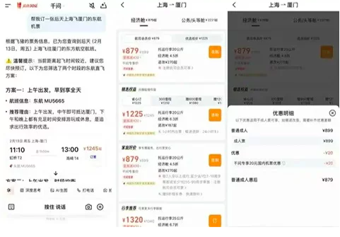 此次合作核心亮点凸显,旅客通过阿里千问App或飞猪平台,仅需一句语音指令,即可完成机票查询、预订,同时享受千问专享优惠,AI还会结合用户需求提供个性化行程推荐,彻底简化传统购票的繁琐流程。三方更计划共建航空AI中台,推动机上离线AI服务落地,拓展更多智慧服务场景。