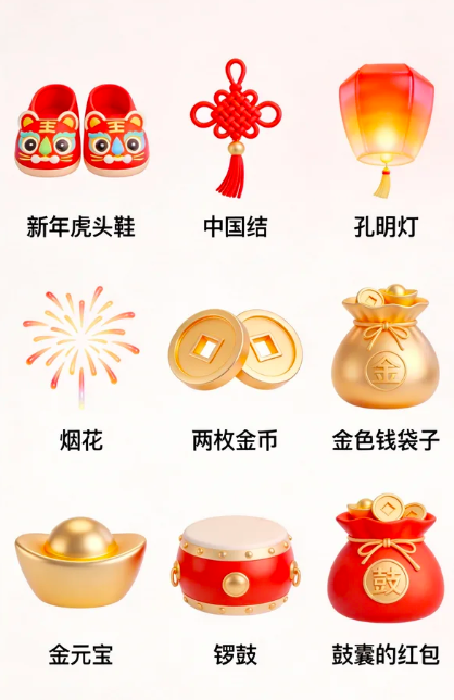 👍一组很适合春节icon和运营视觉素材的提示词。Ctrl C+Ctrl V,就能生成你需要的icon和素材。