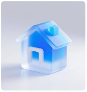 1、提示词: (只需更改红字部分) 一个房屋图标,icon,材质透明,蓝白色配色,磨砂玻璃质感,透明感,UI、UX设计风格,等轴测视角,纯白色背景,影棚灯光,色彩明亮,3D艺术,使用C4D 软件制作,配合 OC渲染器,Pinterest、Dribbble、behance, 细节,高清
