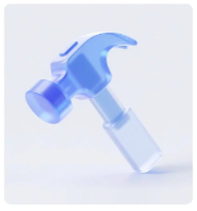 3、提示词: (只需更改红字部分)一个锤子的图标,icon,材质透明,蓝白色配色,摩砂玻璃质感,透明感,UI、UX设计风格,等轴测视角,纯白色背景,影棚灯光,色彩明亮,3D艺术,使用C4D软件制作,配合 OC渲染器,Pinterest、Dribbble、behance,细节,高清,纯白色背景