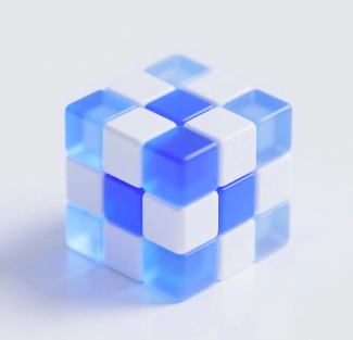 6、提示词: (只需更改红字部分)一个魔方的图标,icon,材质透明,蓝白色配色,磨砂玻璃质感,透明感,UI、UX设计风格,等轴测视角,纯白色背景,影棚灯光,色彩明亮,3D艺术,使用C4D软件制作,配合OC渲染器,Pinterest、Dribbble、behance,细节,高清