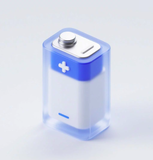2、提示词: (只需更改红字部分) 一个立着放的电池图标,icon,材质透明,蓝白色、绿色配色,磨砂玻璃质感,透明感,UI、UX设计风格,等轴测视角,纯白色背景,影棚灯光,色彩明亮,3D艺术,使用C4D 软件制作,配合 OC渲染器Pinterest、Dribbble、behance, 细节,高清