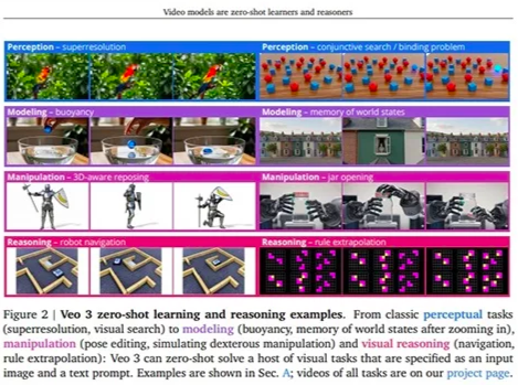搭载 CoF 的 Veo3 模型表现突出:无需专属训练,凭 “初始图 + 文字指令” 就能完成图像修复、目标识别等任务,打破 “一任务一模型” 局限;能理解物理规律与场景规则,实现视觉元素精准操控,如为静态图像添加动态效果;在 5×5 迷宫测试中成功率达 78%,远超前代。