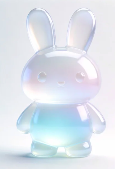 3D渲染风格icon,毛玻璃风格,主体为浅白色渐变的可爱版兔子造型可爱简化,整体采用清新的色调,通过柔和光影过渡塑造简洁现代的视觉氛围,纯白色背景,呈现光滑的塑料质感,精致感,C4D ,OC渲染器8K 分辨率,大师级,辉光渲染