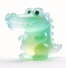 3D渲染风格icon,毛玻璃风格,主体为浅绿色渐变的可爱版鳄鱼造型,造型可爱简化,整体采用清新的色调,通过柔和光影过渡塑造简洁现代的视觉氛围,纯白色背景,呈现光滑的塑料质感,精致感,C4D,OC渲染器8K 分辨率,大师级,辉光渲染