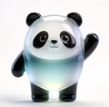 3D渲染风格,毛玻璃风格,主体为浅黑白相间色渐变的可爱大熊猫造型,造型可爱简化,整体采用清新的色调,通过柔和光影过渡塑造简洁现代的视觉氛围,纯白色背景,呈现光滑的塑料质感,精致感,C4D ,OC渲染器8K 分辨率,大师级,辉光渲染