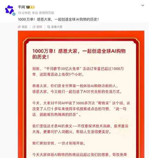 千问App近期重磅推出的“30亿免单”活动,虽凭借低门槛福利点燃全民参与热情,却因流量远超预期引发系列乱象。活动上线仅9小时,订单量便飙升至1000万单,巨量访问瞬间压垮服务端,导致系统严重卡顿、部分功能瘫痪,不少用户遭遇下单失败、领券无法核销等问题,陷入“能聊天却不能下单”的窘境。
